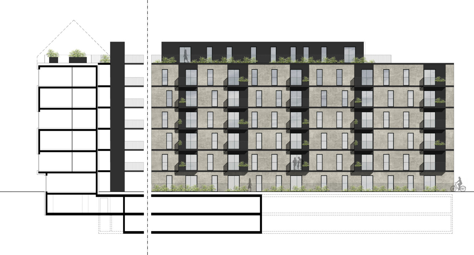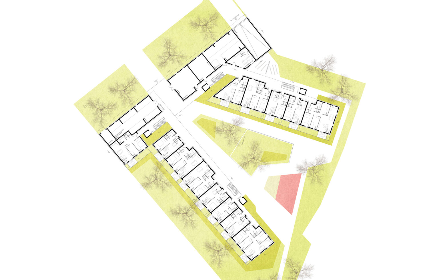 Highlights: 122 Wohneinheiten mit privaten Freiflächen (Garten, Balkon, Terrasse). Kommunikative Laubengänge für ein starkes nachbarschaftliches Miteinander. Grüne Oasen: Drei Hofzonen, ein großzügiger Park und eine Gemeinschaftsdachterrasse für Urban Gardening. Nachhaltigkeit: Extensiv begrüntes Dach und versickerungsfähige Außenanlagen.